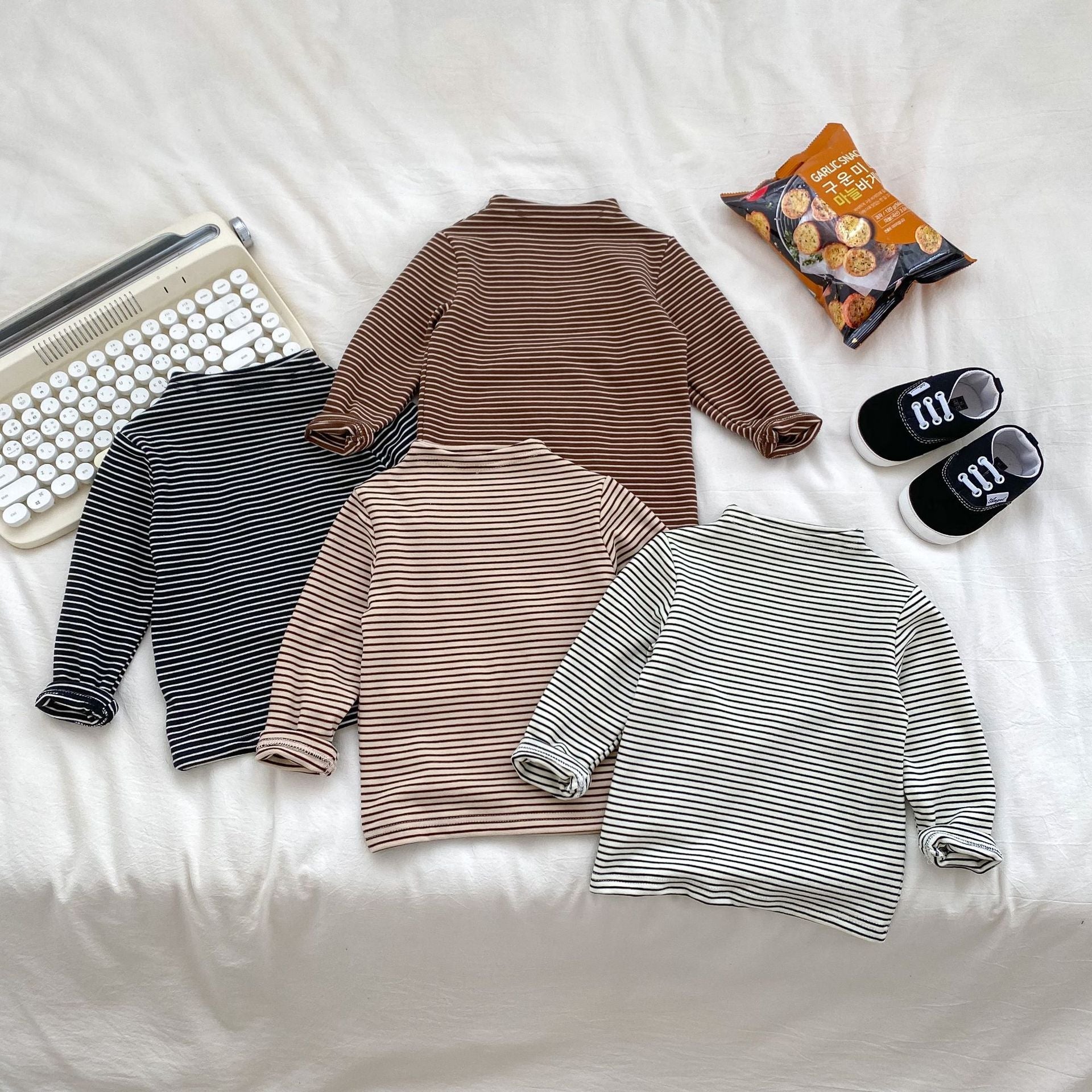 🧣 Stylish striped turtleneck design for added warmth