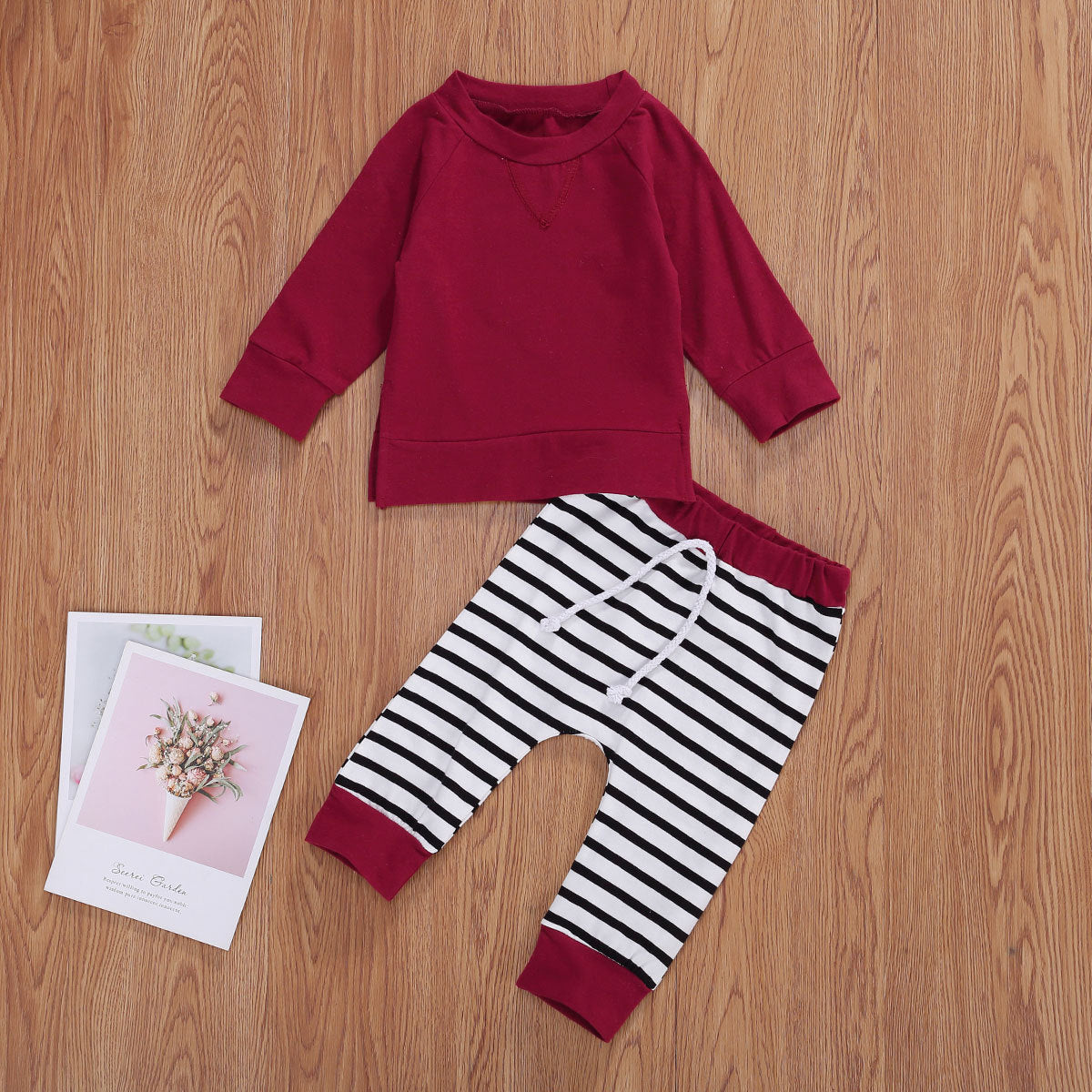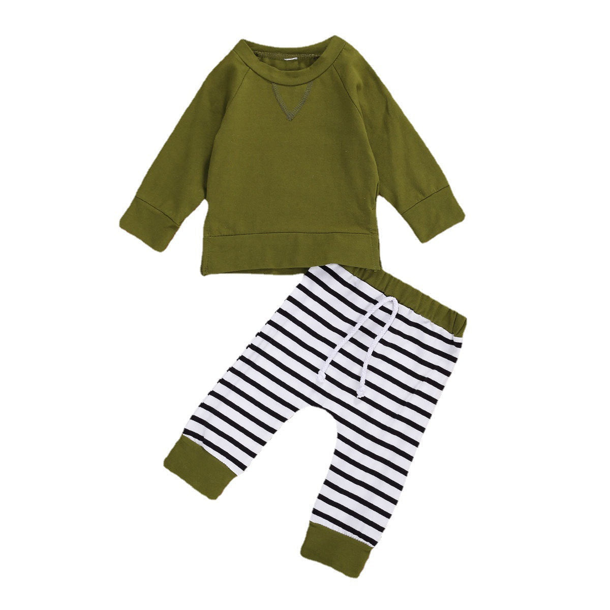 👶 Stylish All-in-One Set: Includes a sleek solid color hoodie paired with trendy striped trousers for a standout look.