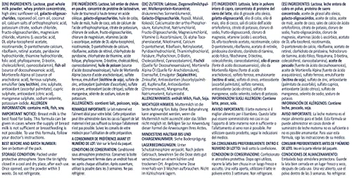 TOP NUTRIENTS FOR YOUR BABY’S PROPER DEVELOPMENT – 13 Vitamins and 12 minerals. 5 nucleotides, prebiotics (GOS / FOS), DHA / ARA, Taurine, Choline, inositol, Omega 3 and Omega 6
