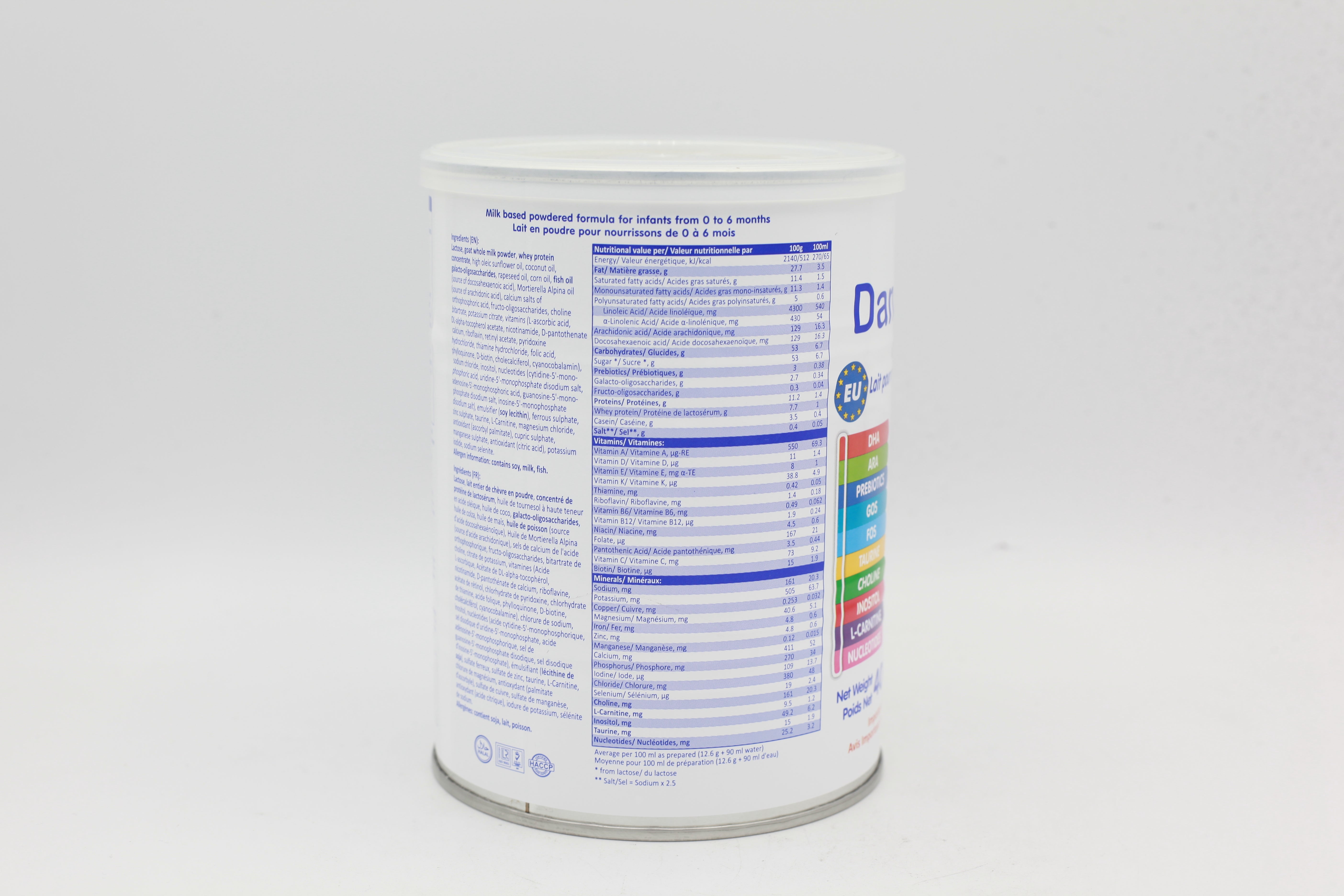 TOP NUTRIENTS FOR YOUR BABY’S PROPER DEVELOPMENT – 13 Vitamins and 12 minerals. 5 nucleotides, prebiotics (GOS / FOS), DHA / ARA, Taurine, Choline, inositol, Omega 3 and Omega 6
